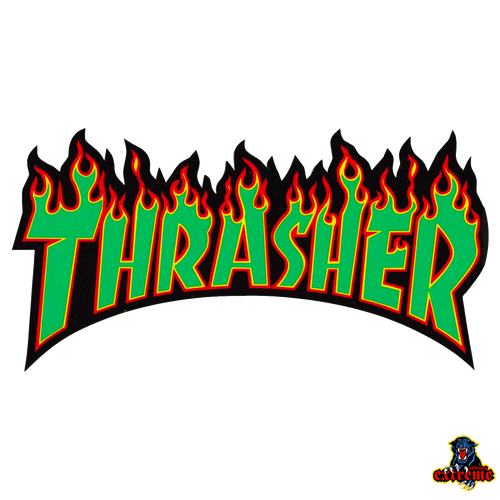 THRASHER Sticker Flame Green Medium